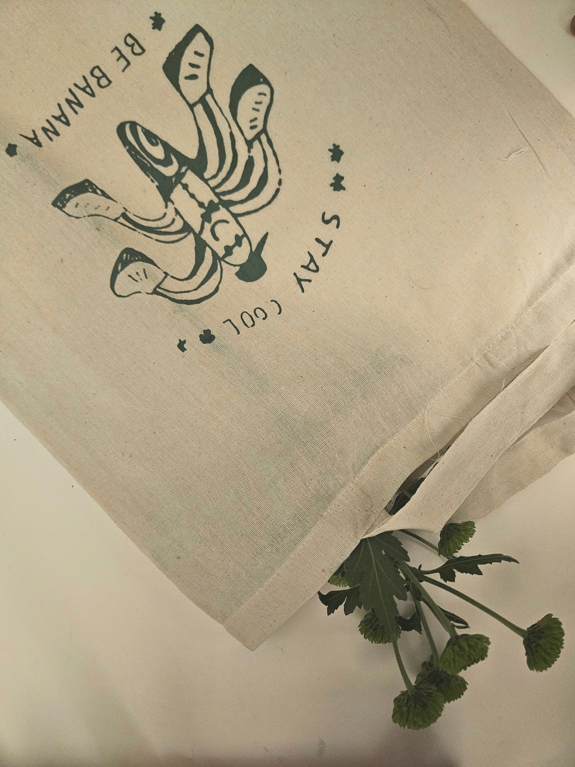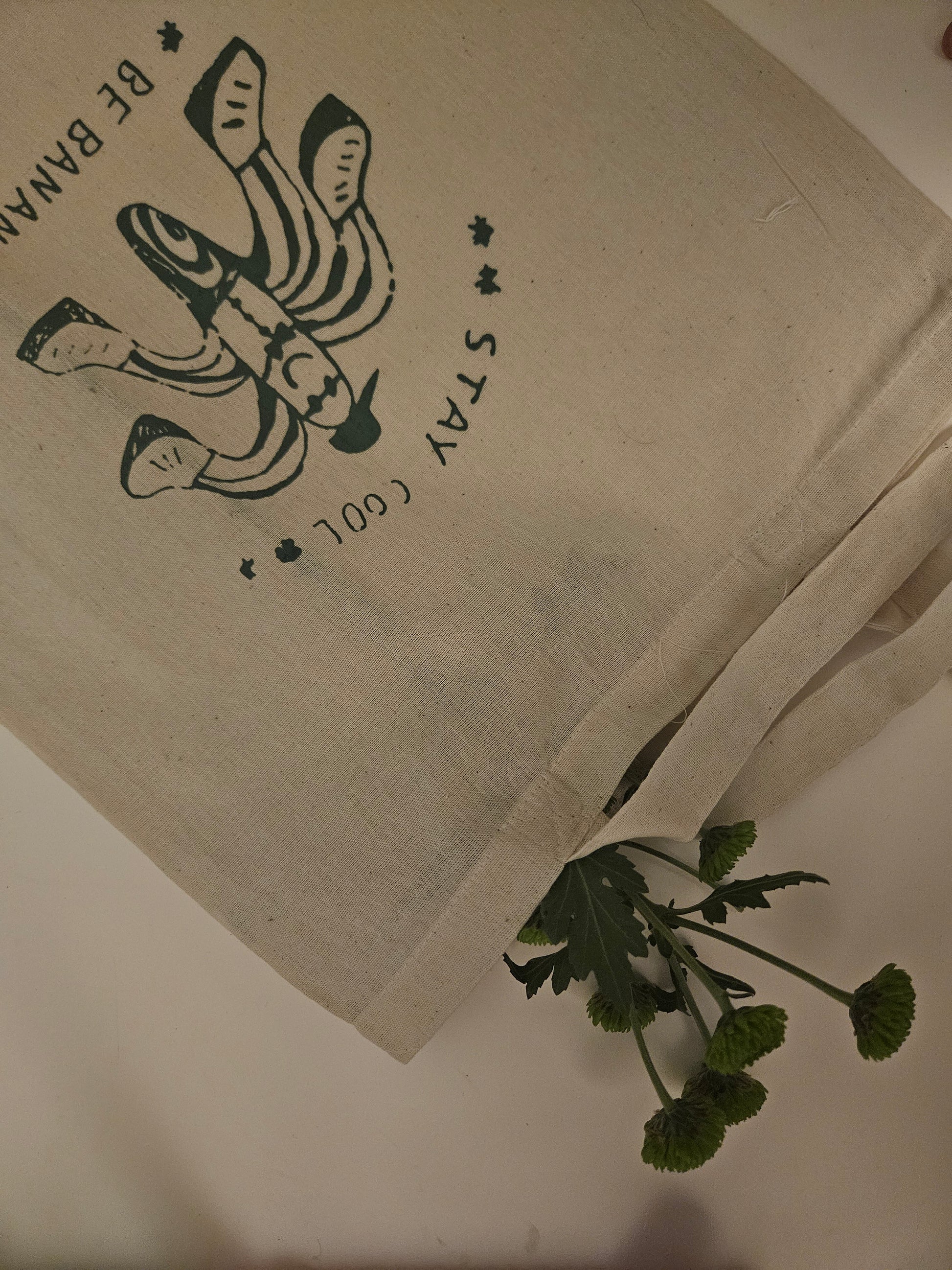 Técnica: Serigrafía manual, 1 color sobre bolso algodón.